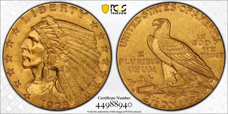 View all auction prices realized for 1925-D $2.50 coins