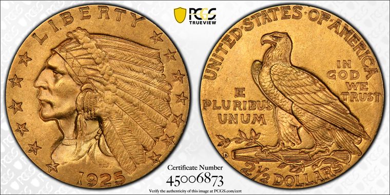 View all auction prices realized for 1925-D $2.50 coins