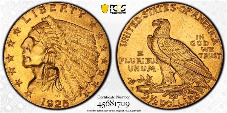 View all auction prices realized for 1925-D $2.50 coins