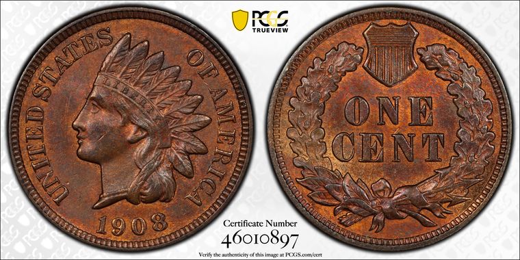 View all auction prices realized for 1908 1C coins