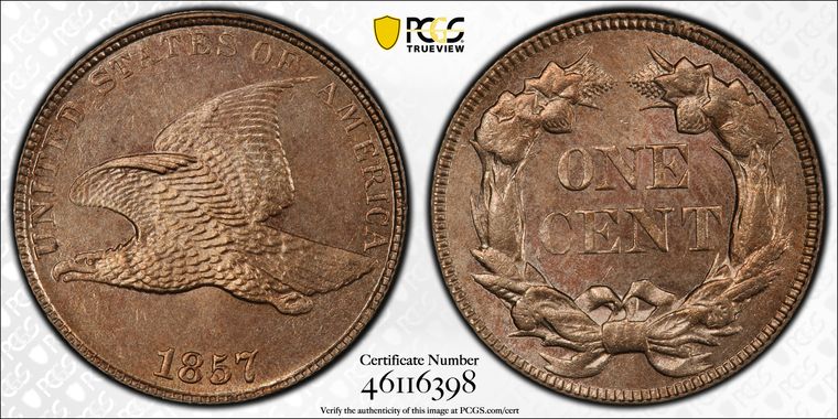 View all auction prices realized for 1857 1C coins
