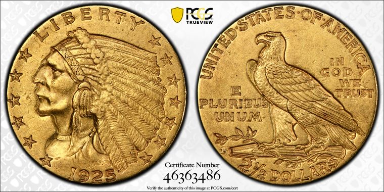 View all auction prices realized for 1925-D $2.50 coins