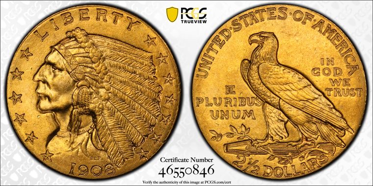 View a Set Registry collection that includes a 1908 $2.50 coin: