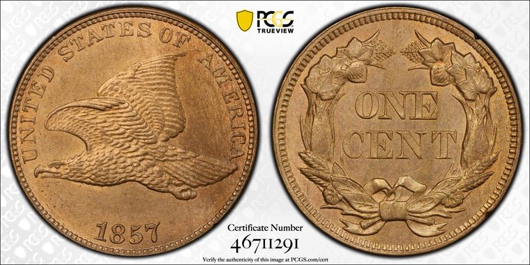 View all auction prices realized for 1857 1C coins
