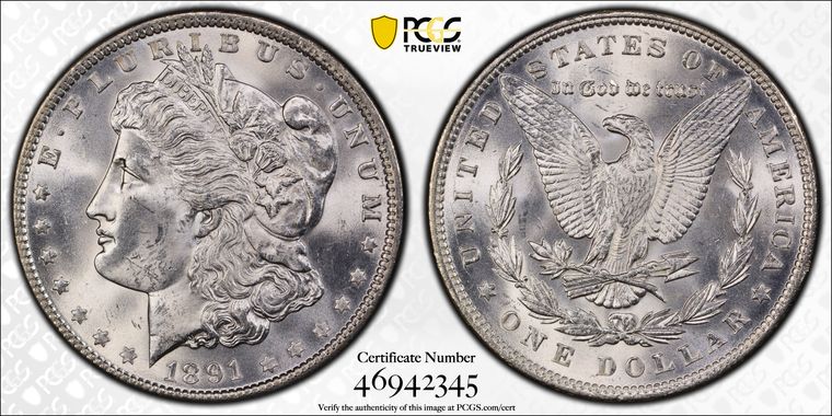 View all auction prices realized for 1891 $1 coins