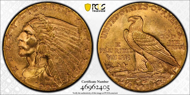 View all auction prices realized for 1925-D $2.50 coins