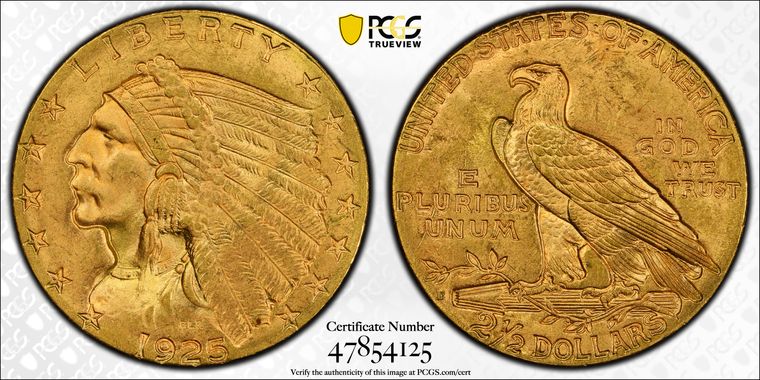 View all auction prices realized for 1925-D $2.50 coins