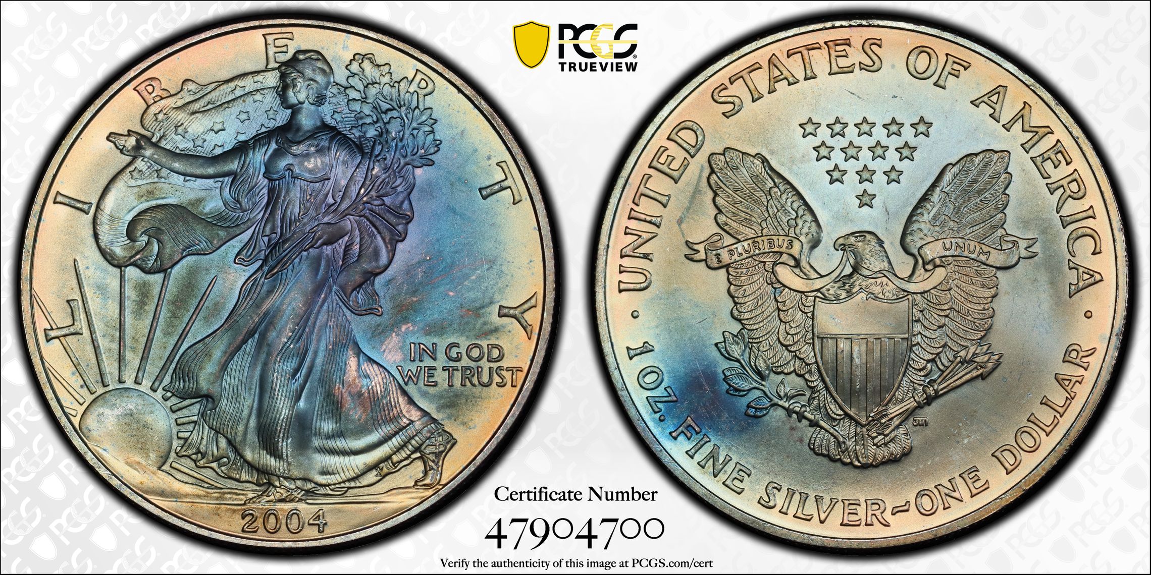 Verification of certification numbers on the PCGS Certification Database does not eliminate the risk of buying counterfeit and altered coins. Though uncommon, counterfeiters may also counterfeit PCGS grading inserts using actual certification numbers derived from public sources.