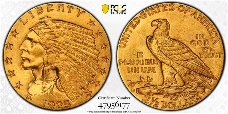 View all auction prices realized for 1925-D $2.50 coins