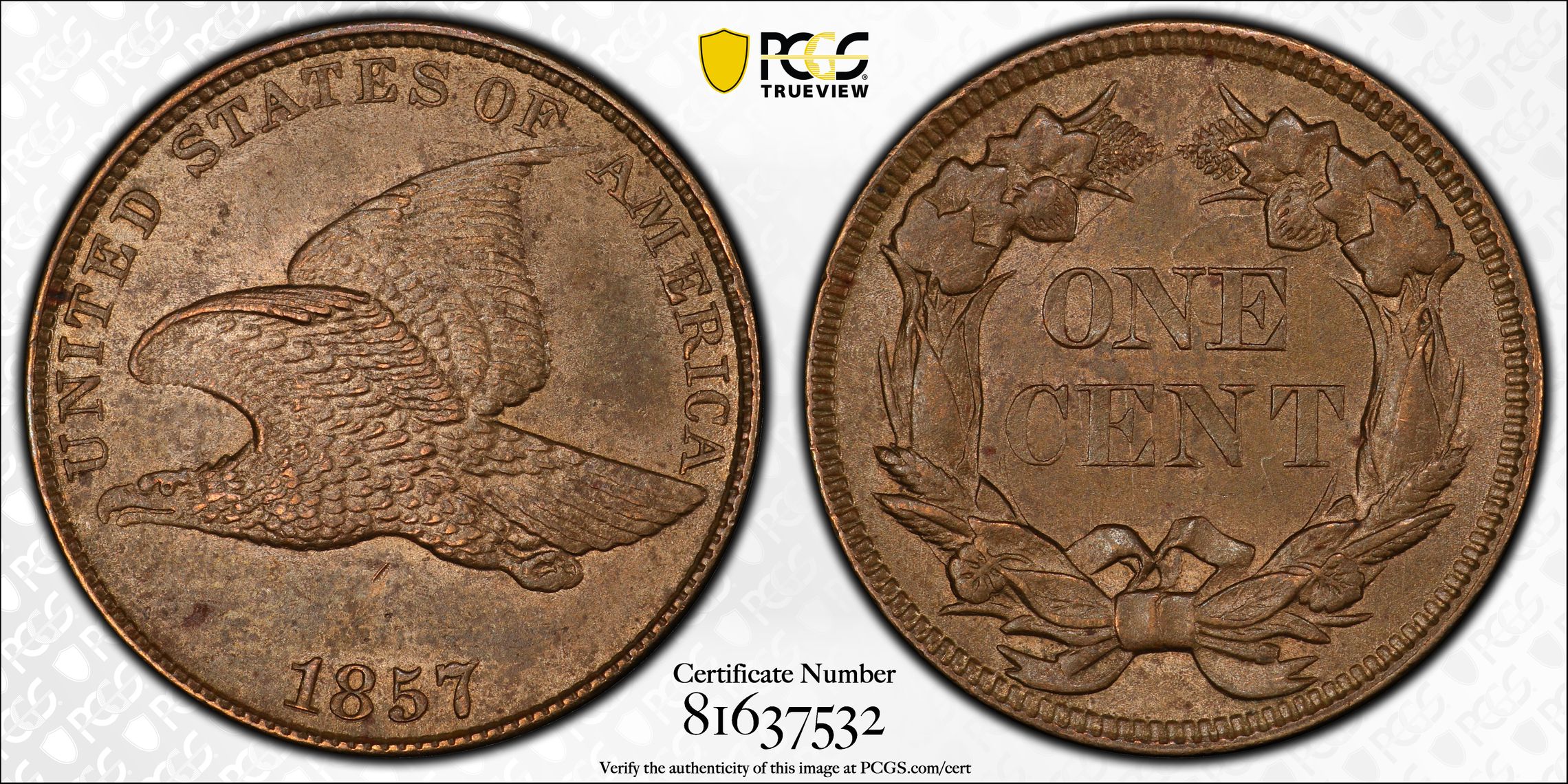 View all auction prices realized for 1857 1C coins