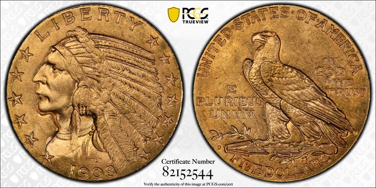 This cert is currently in the Set Registry inventory of DLH and is featured in one or more sets, including D. L. Hansen Indian Head $5 Gold.