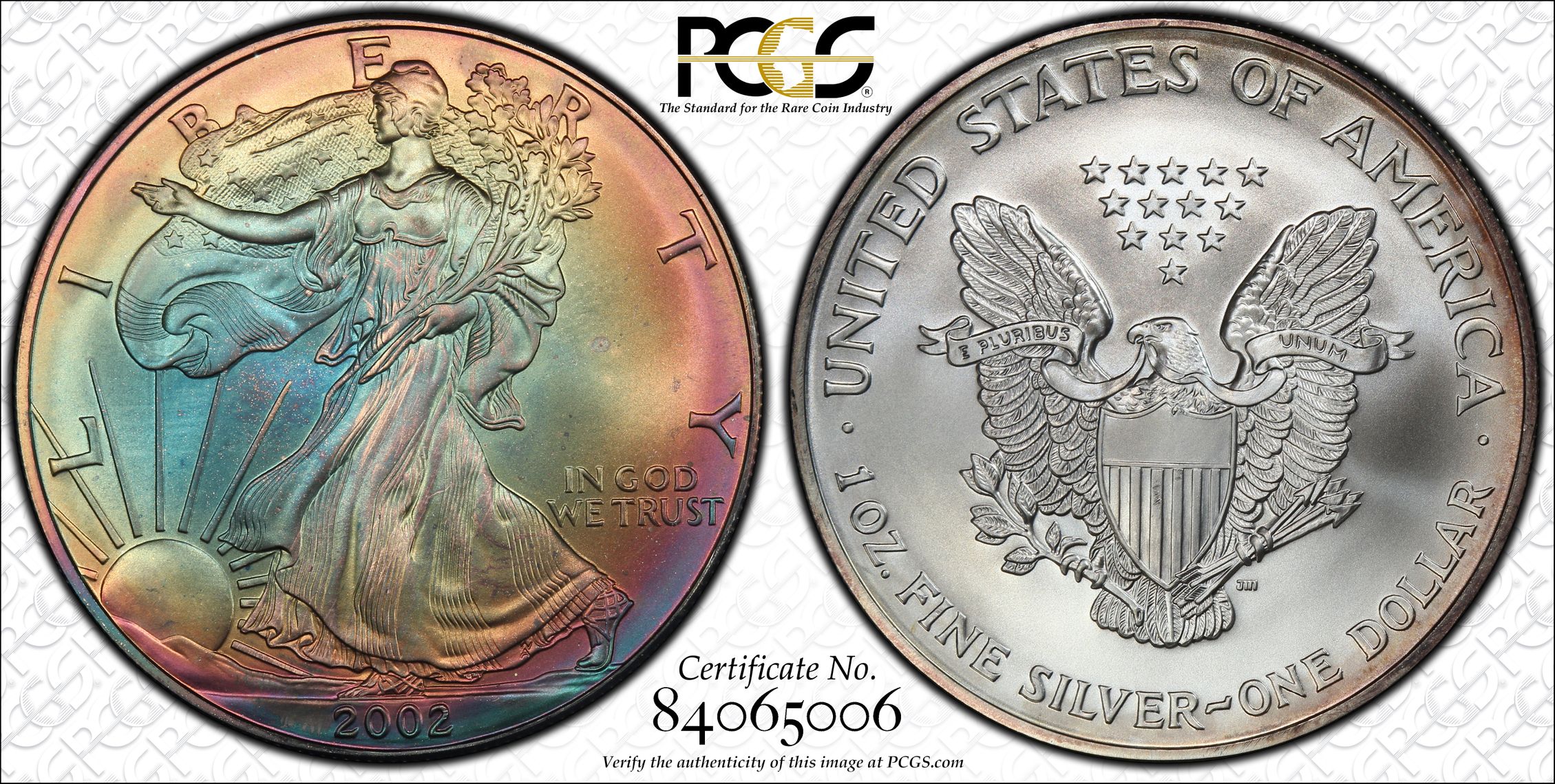 Verification of certification numbers on the PCGS Certification Database does not eliminate the risk of buying counterfeit and altered coins. Though uncommon, counterfeiters may also counterfeit PCGS grading inserts using actual certification numbers derived from public sources.