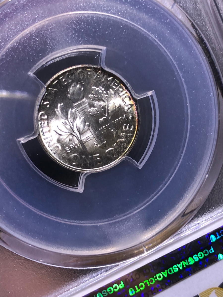 Insane target-style-rainbow on obverse, w/ minor toning on reverse