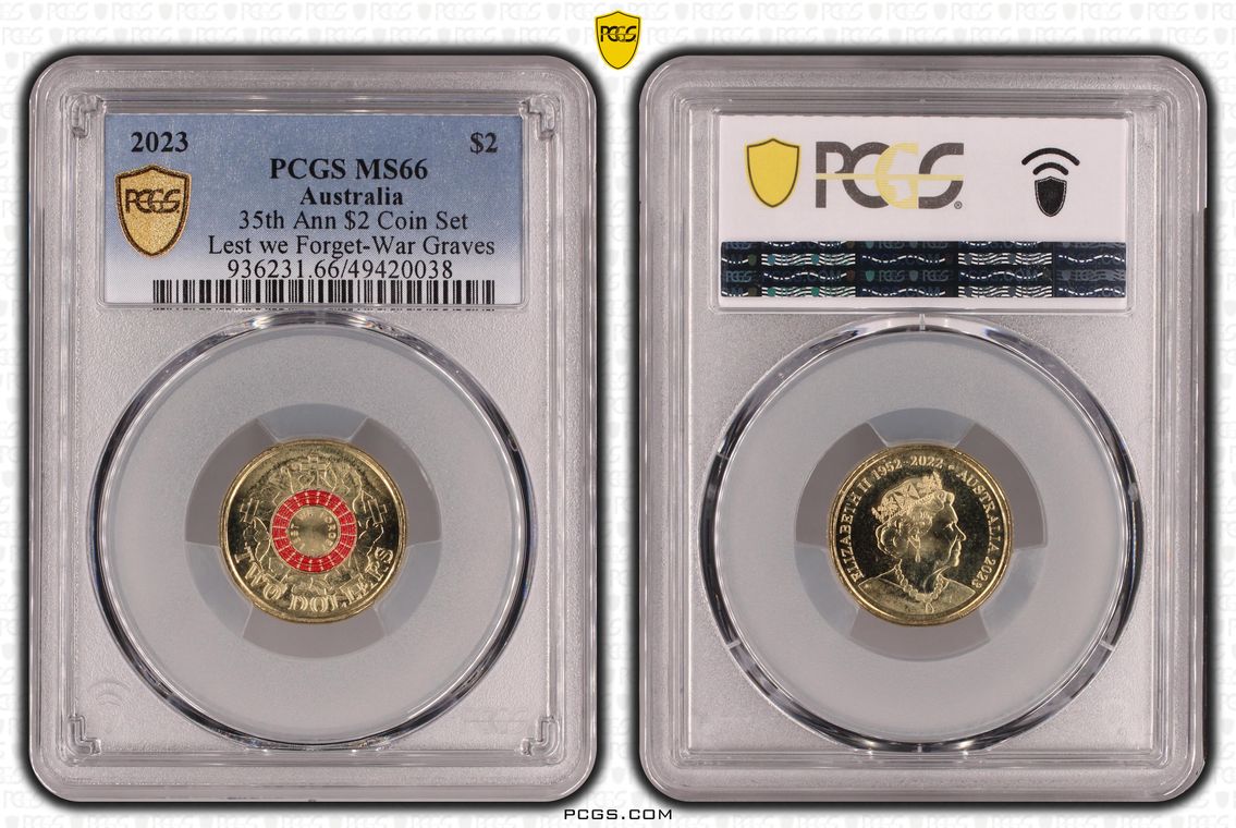 2023 $2 35th Ann $2 Coin Set Colorized Lest we Forget-War Graves MS66
