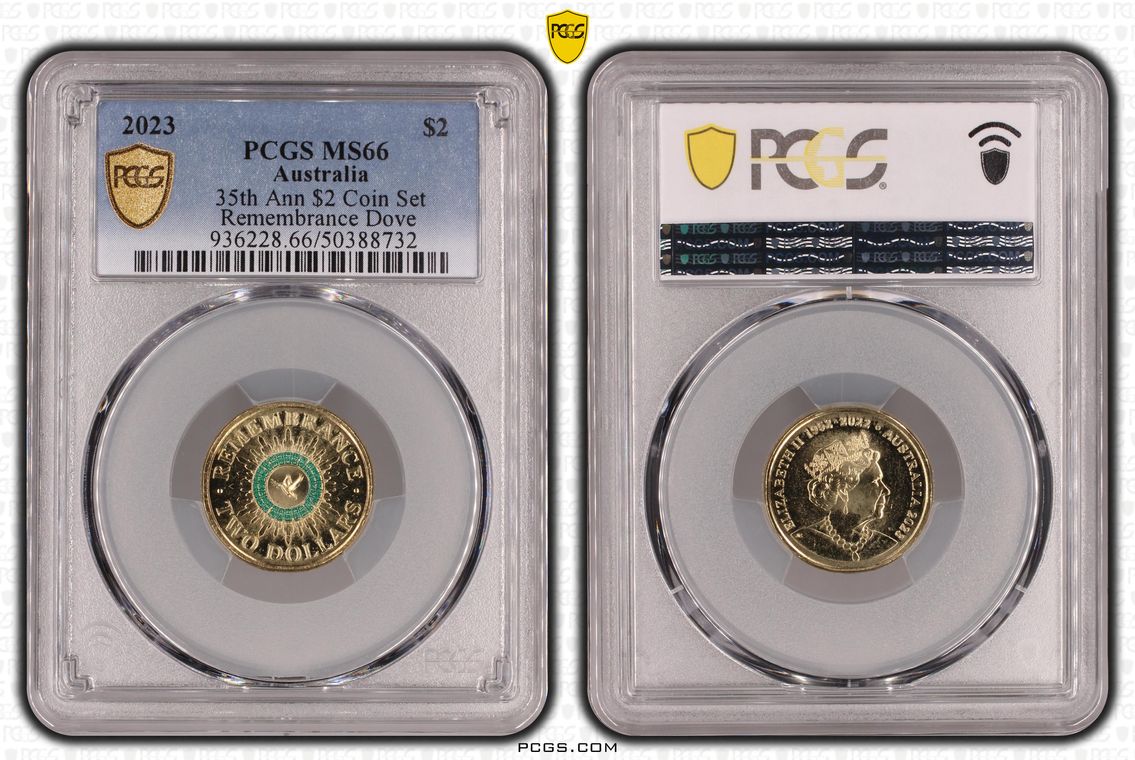 2023 $2 35th Ann $2 Coin Set Colorized Remembrance Dove MS66