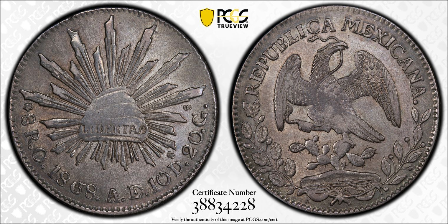 1868-O AE 8 R Oa16 Ornate 6 AU53