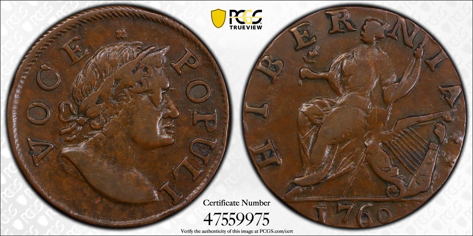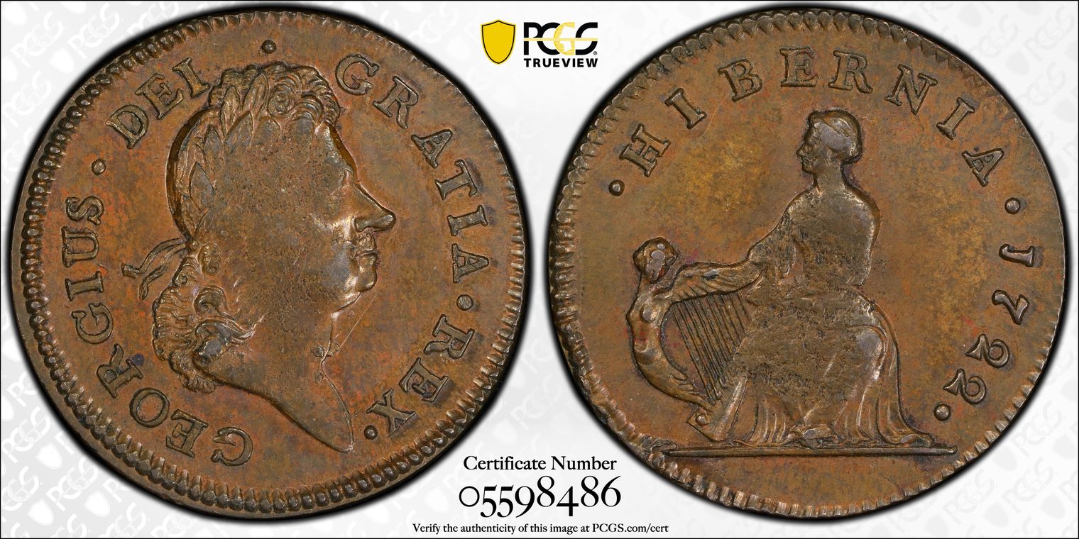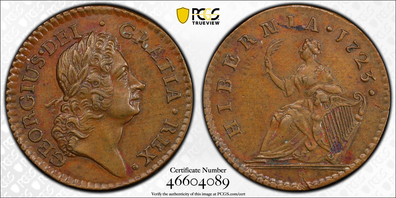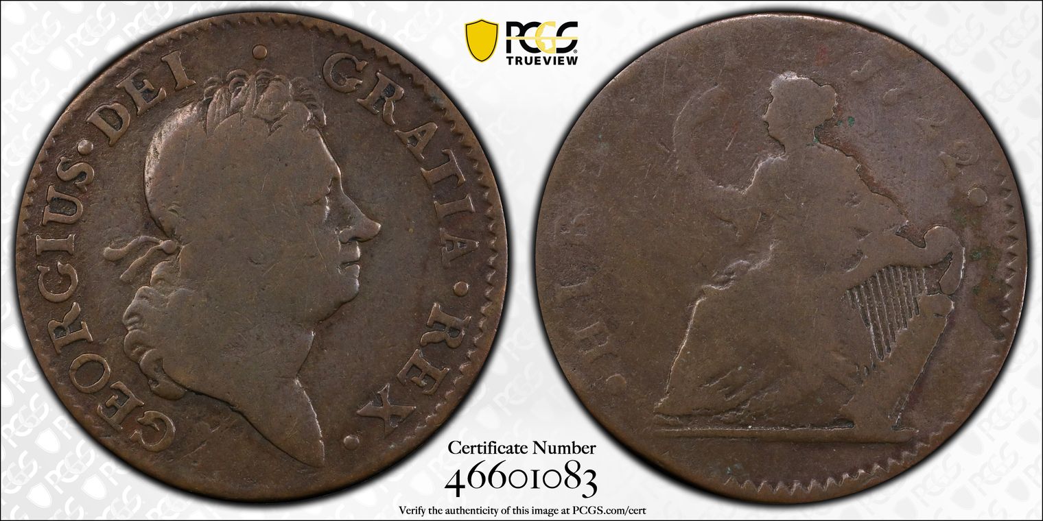 Colonial Great Britain Wood’s Hibernia Farthing.