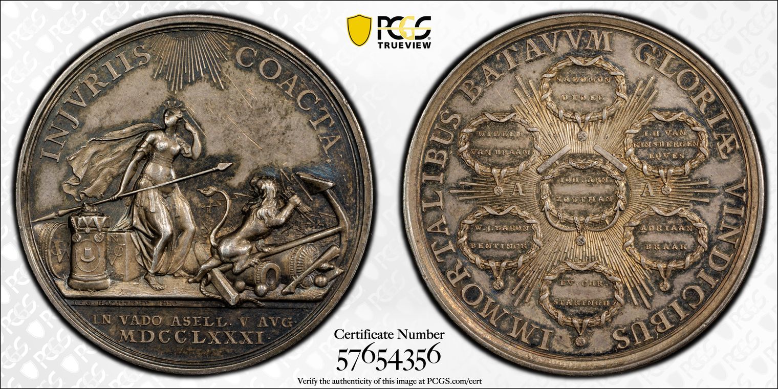 From Stack's Bowers Galleries June 15th, 2023 Auction, Lot #5017 1892-1893 World's Columbian Exposition Declaration of Independence Medal. Eglit-36A, Rulau-X9, var. Silvered White Metal. BOLDENWECK & CO. Edge. MS-62 (NGC). 59 mm. Silvered examples of this type are unlisted in both the Eglit and Rulau references.