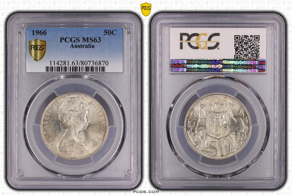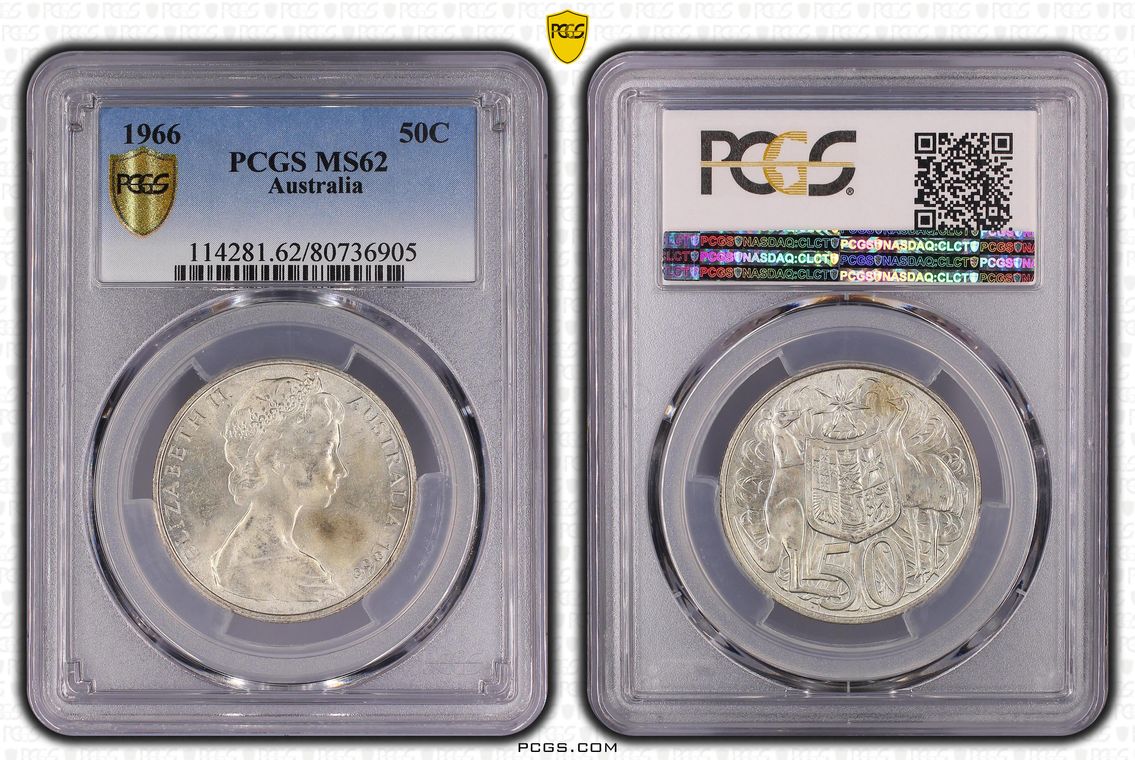 Australia Silver 1966 Fifty Cent PCGS MS62 UNC Graded Coin 50 Cent