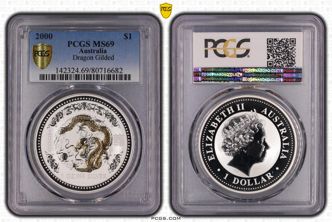 2000 Australia Silver One Dollar $1 Dragon-Gilded PCGS GRADED FDC MS69