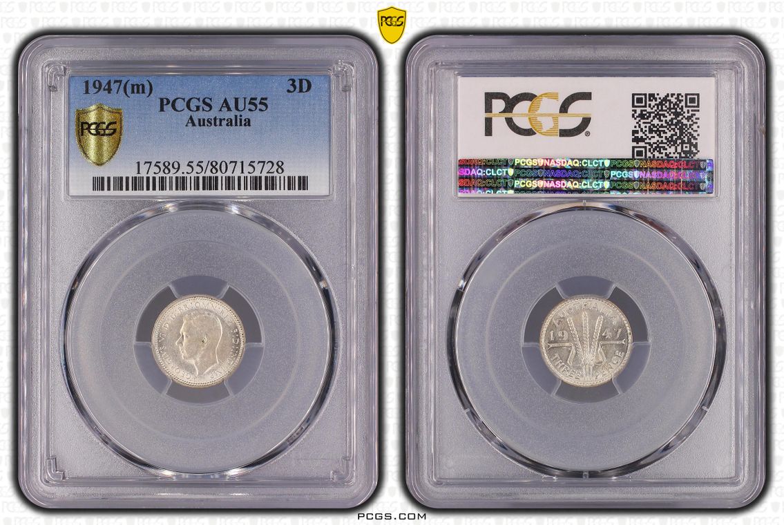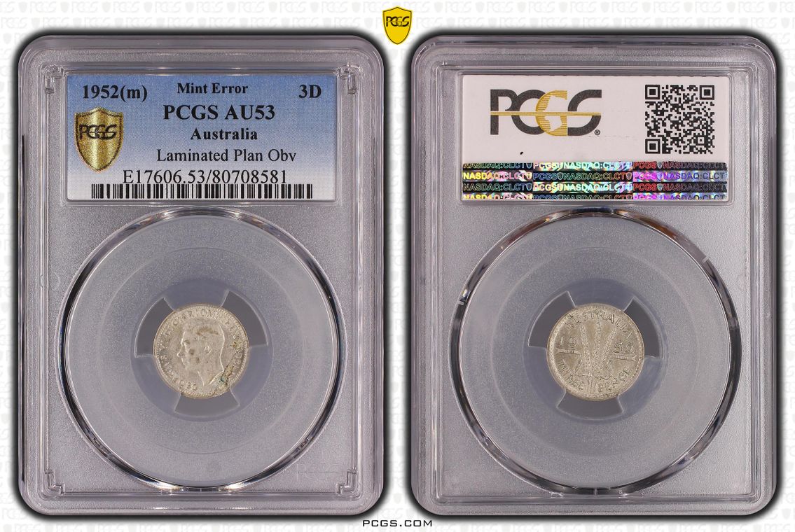 Error Planchet Flaw 1952 AU53 Australia Threepence 3D PCGS Extremely Fine
