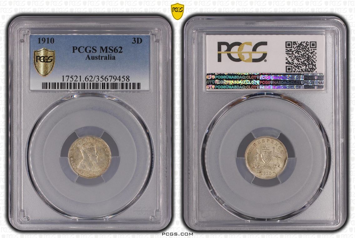1919M Australia Threepence 3d Coat of Arms PCGS GRADED Extremely Fine AU53