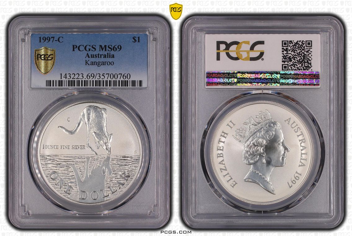 1997-C Australia Silver One Dollar $1 Kangaroo PCGS GRADED - MS69