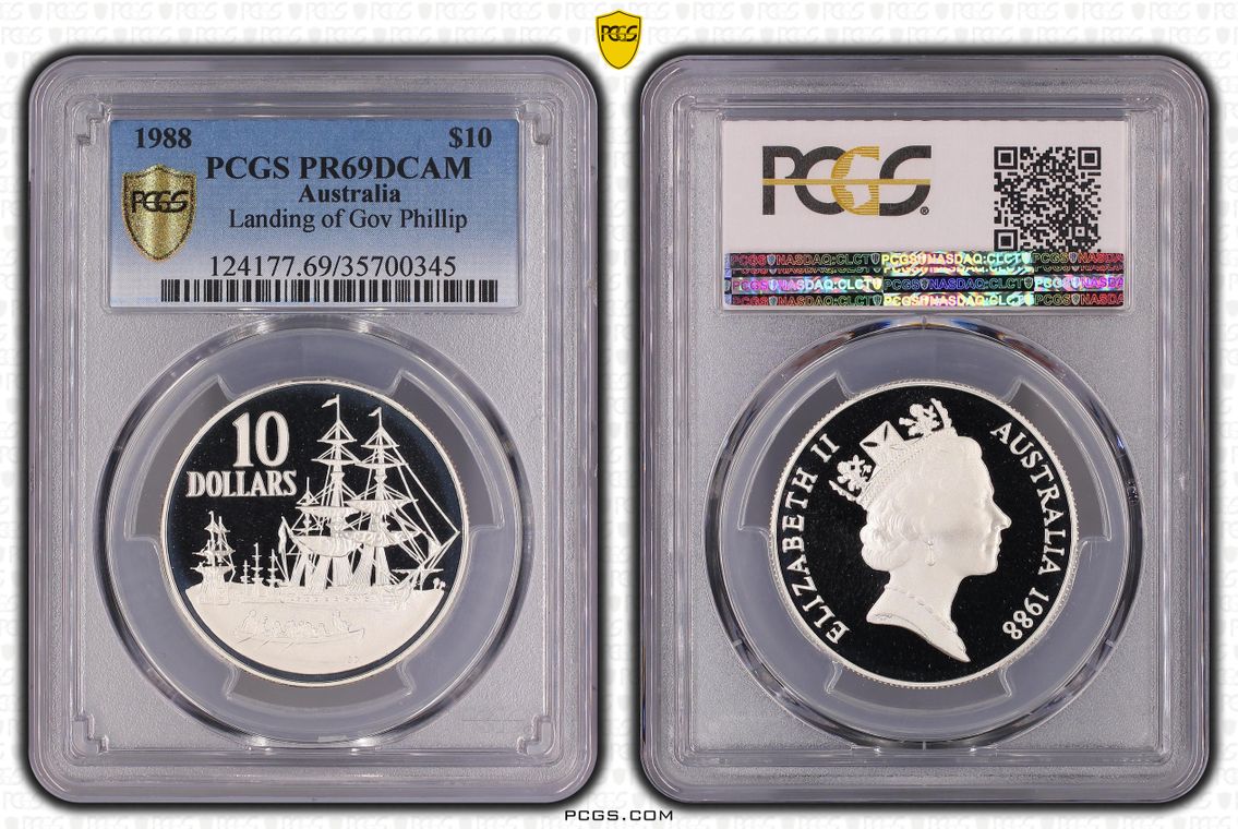 1988 Australia Silver Ten Dollar, $10 Landing of Gov Phillip PCGS - PR69DCAM