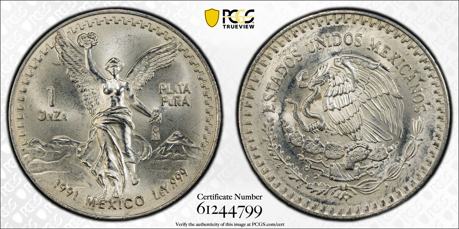 1991-Mo Onza Libertad Ag T2 - PLaTA PuRA MS63