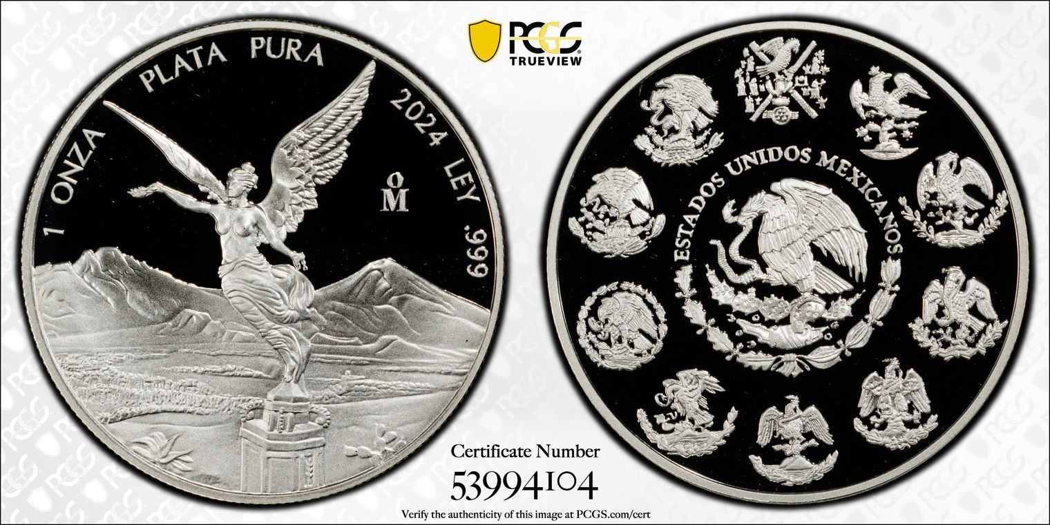 2024-Mo Onza Libertad Ag Mexico Flag Picture Frame MS70