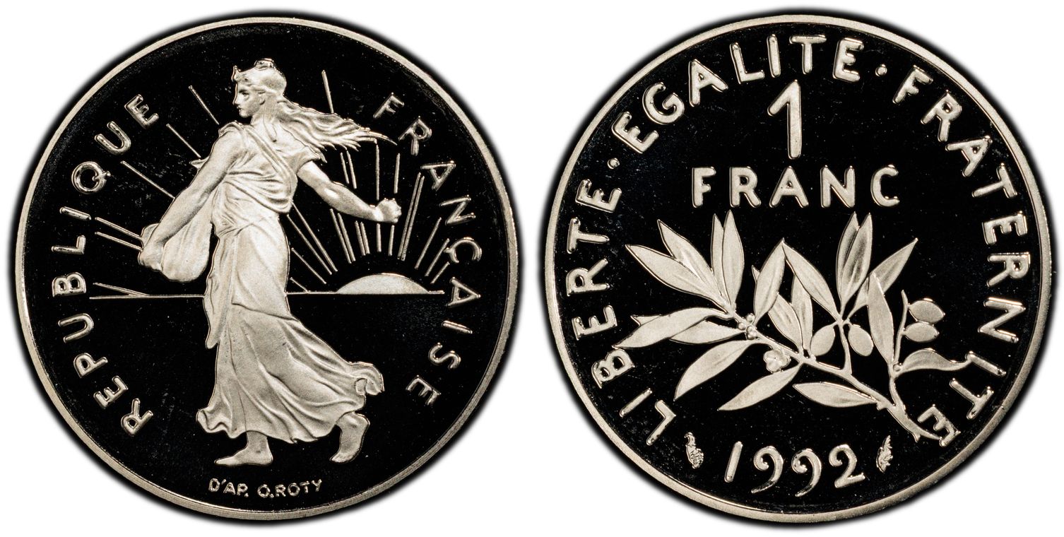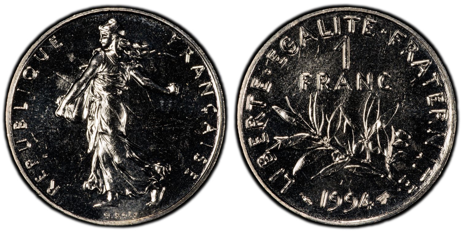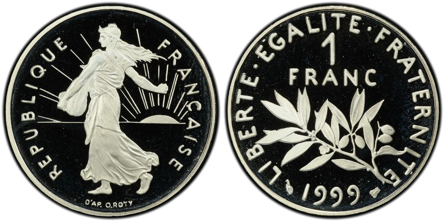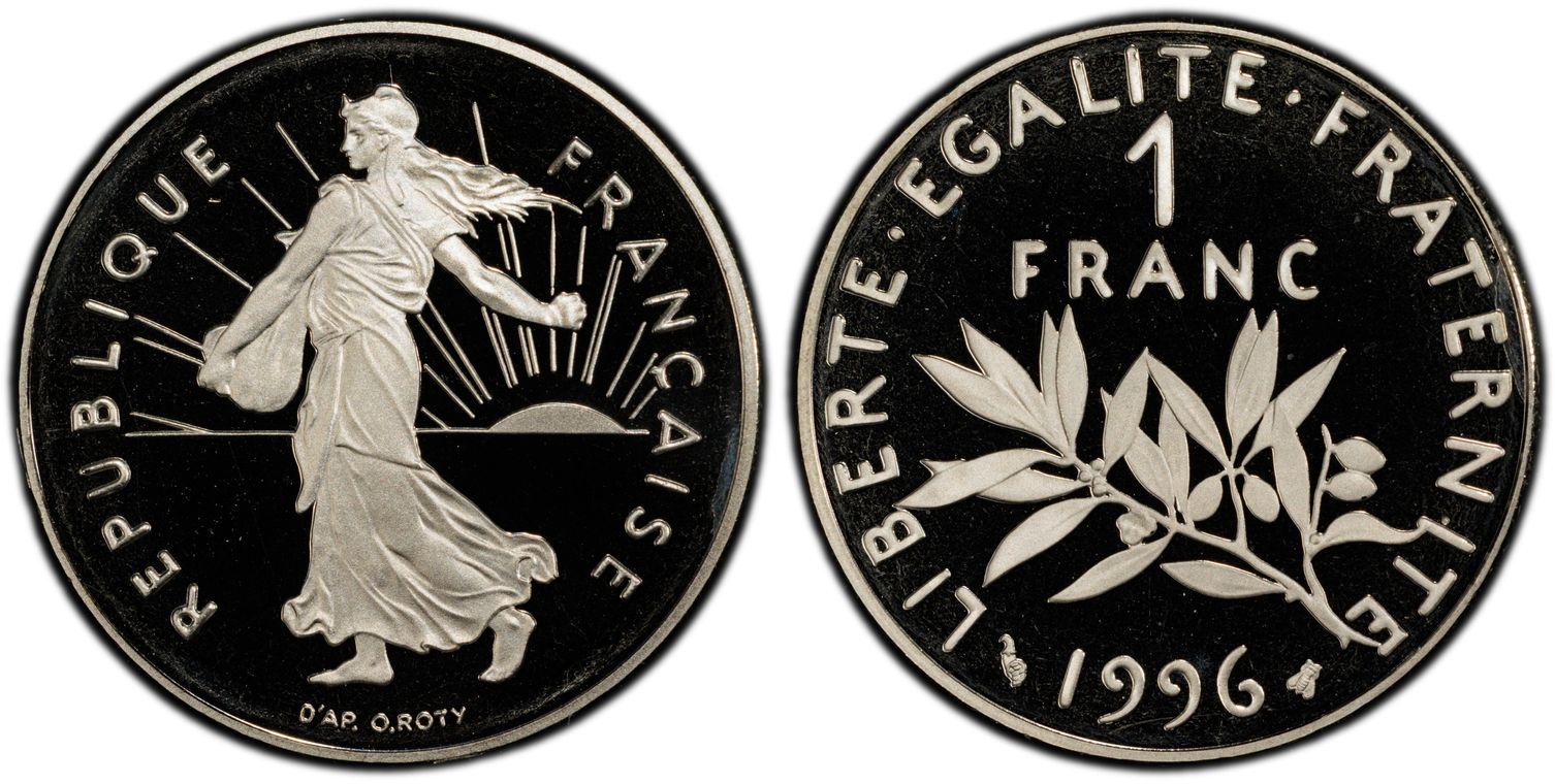 Avant le passage à l'euro, la Monnaie de Paris, en collaboration avec la griffe du designer Philippe Starck, décide de frapper la dernière monnaie en franc : 1 franc appelé "l'ultime franc". Il y a eu 4963 exemplaires de pièce d'or. La pièce d'1 Franc Ultime pèse 26,1 grammes et mesure 33 mm. Son titrage est de 750/1000. - L'avers de la pièce représente un unique élément de la composition étant le décentrage du chiffre 1, symbolisant la disparition du franc. - Sur le revers, nous pouvons lire : ultime franc. Les techniciens de l'institution ont conçu minutieusement les outillages de cette monnaie aux formes ondulées, à la tranche inscrite et aux reliefs en méplat. Malheureusement la capsule en plastique dans laquelle elle était vendue a souvent laissé des traces sur la surface de la pièce ou sur la tranche.