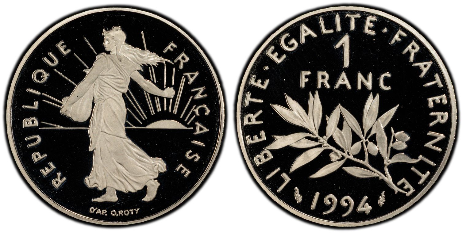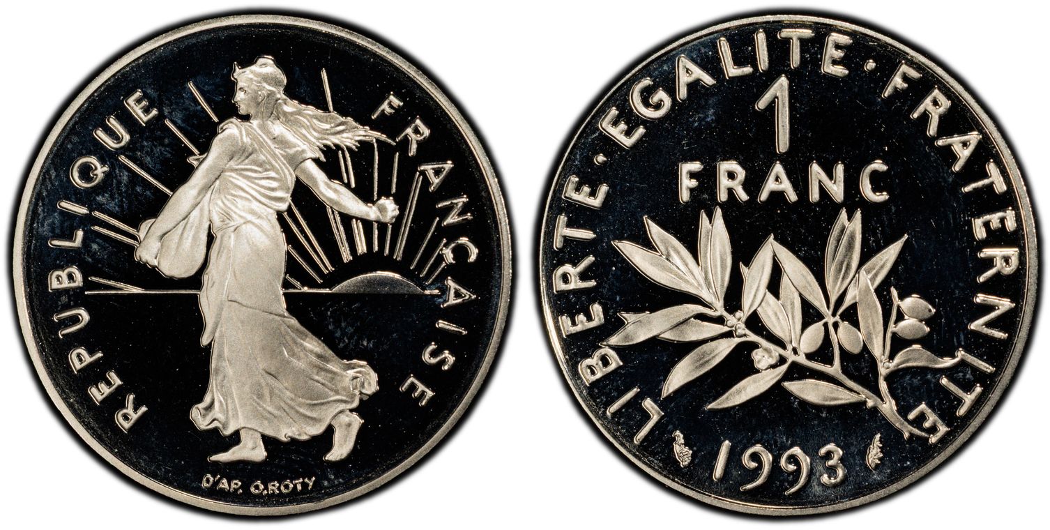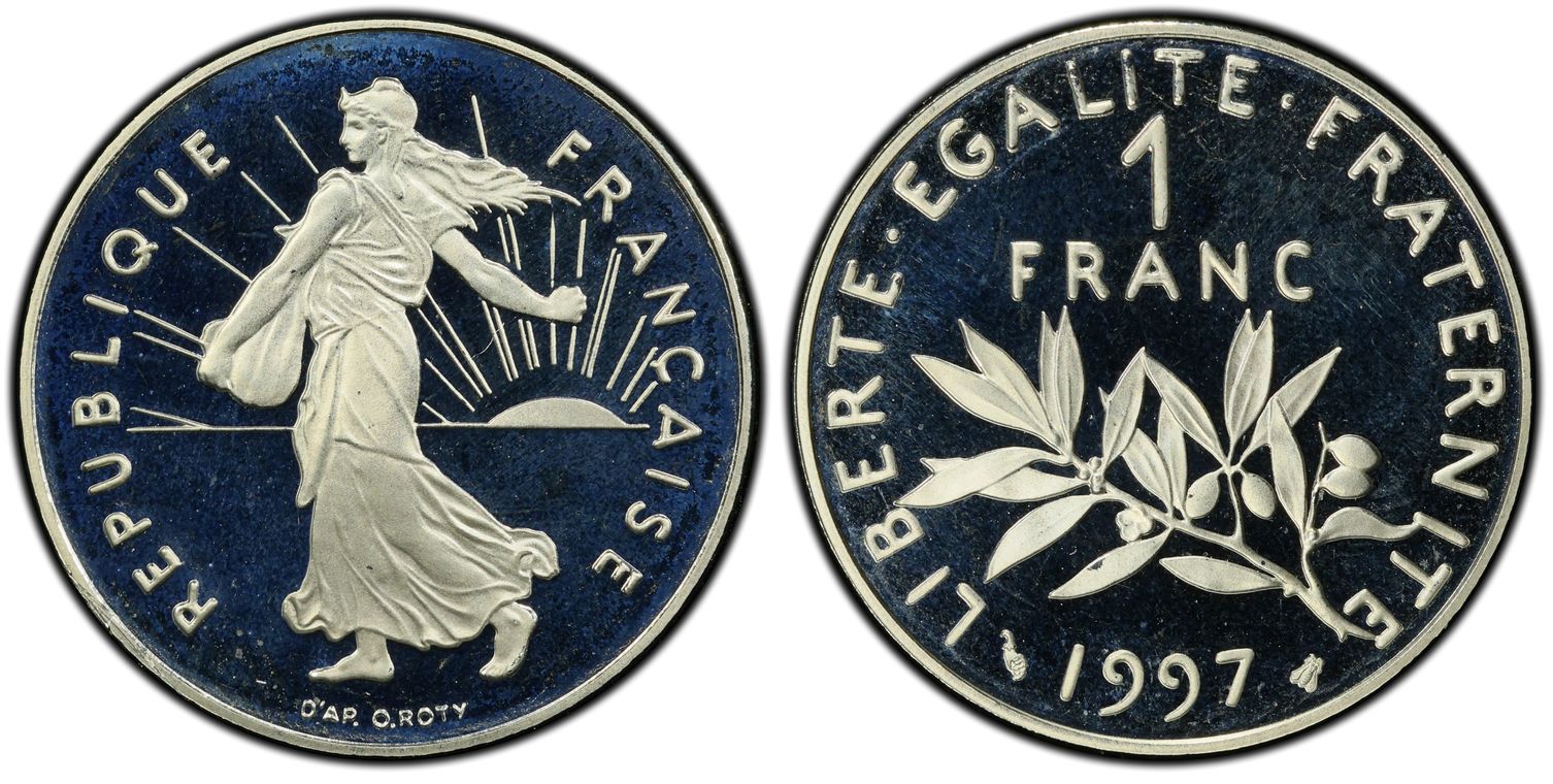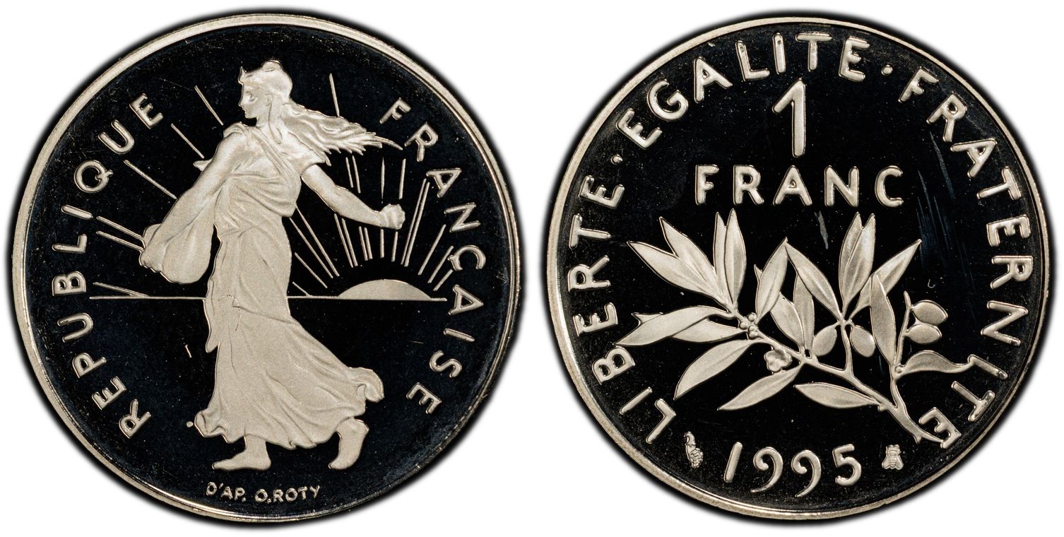 Avant le passage à l'euro, la Monnaie de Paris, en collaboration avec la griffe du designer Philippe Starck, décide de frapper la dernière monnaie en franc : 1 franc appelé "l'ultime franc". Il y a eu 4963 exemplaires de pièce d'or. La pièce d'1 Franc Ultime pèse 26,1 grammes et mesure 33 mm. Son titrage est de 750/1000. - L'avers de la pièce représente un unique élément de la composition étant le décentrage du chiffre 1, symbolisant la disparition du franc. - Sur le revers, nous pouvons lire : ultime franc. Les techniciens de l'institution ont conçu minutieusement les outillages de cette monnaie aux formes ondulées, à la tranche inscrite et aux reliefs en méplat. Malheureusement la capsule en plastique dans laquelle elle était vendue a souvent laissé des traces sur la surface de la pièce ou sur la tranche.