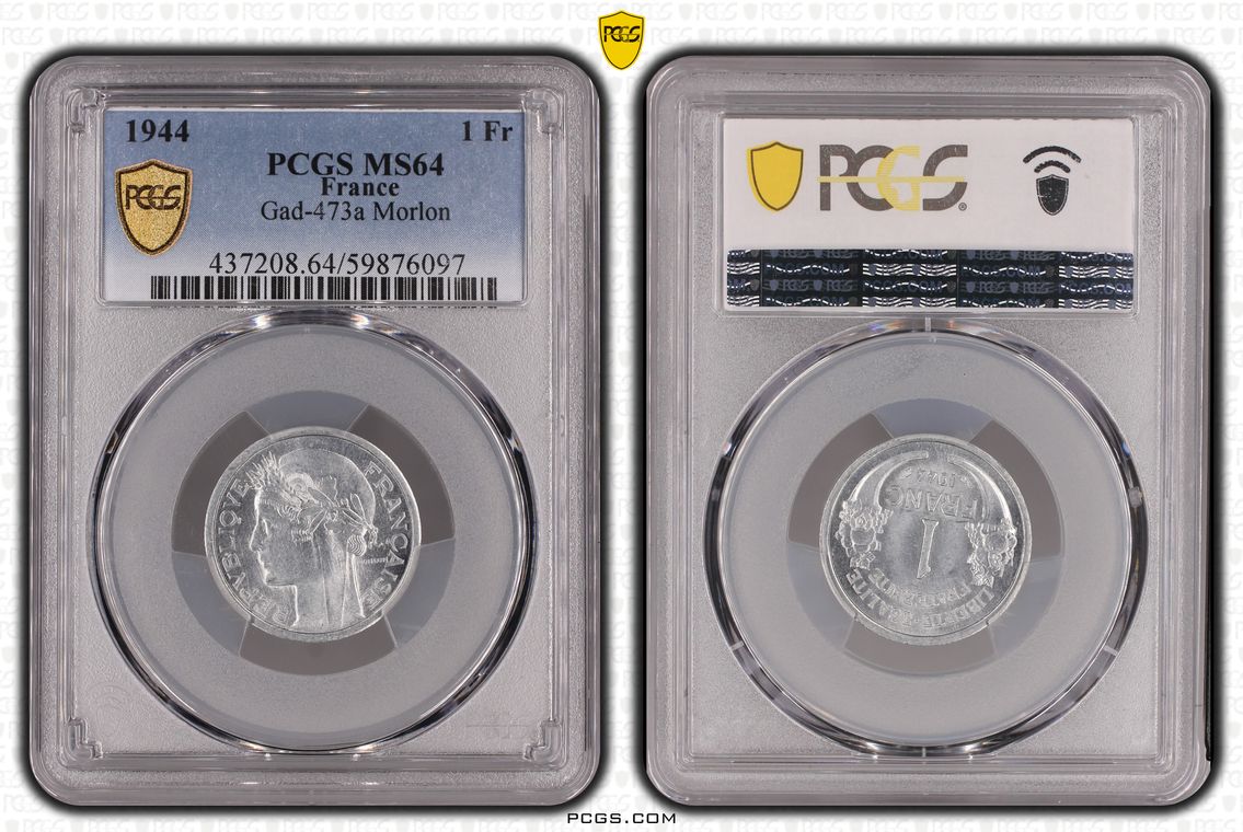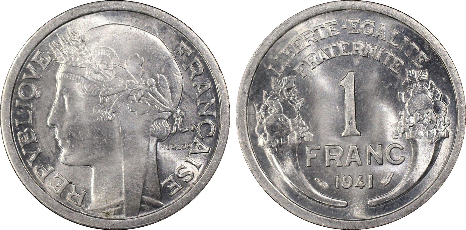 Essai-piéfort de 1 franc Morlon en aluminium, Frappe spéciale (SP) 1946, Paris. Seuls 104 exemplaires frappés. C’est le second plus haut grade (4) !