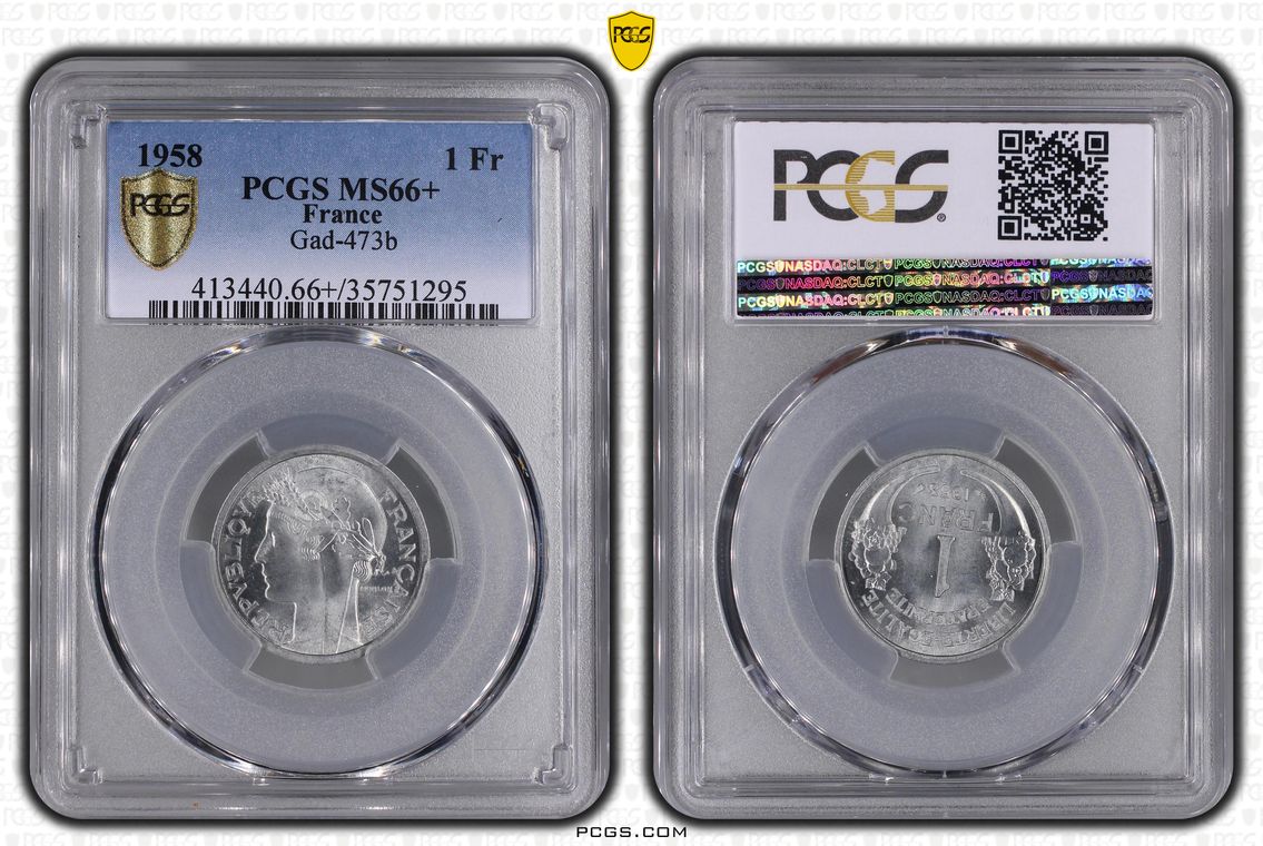 TOP POP et unique exemplaire à ce niveau de grade pour cette rareté au sein des 1 Franc Semeuse de la 5ème République.