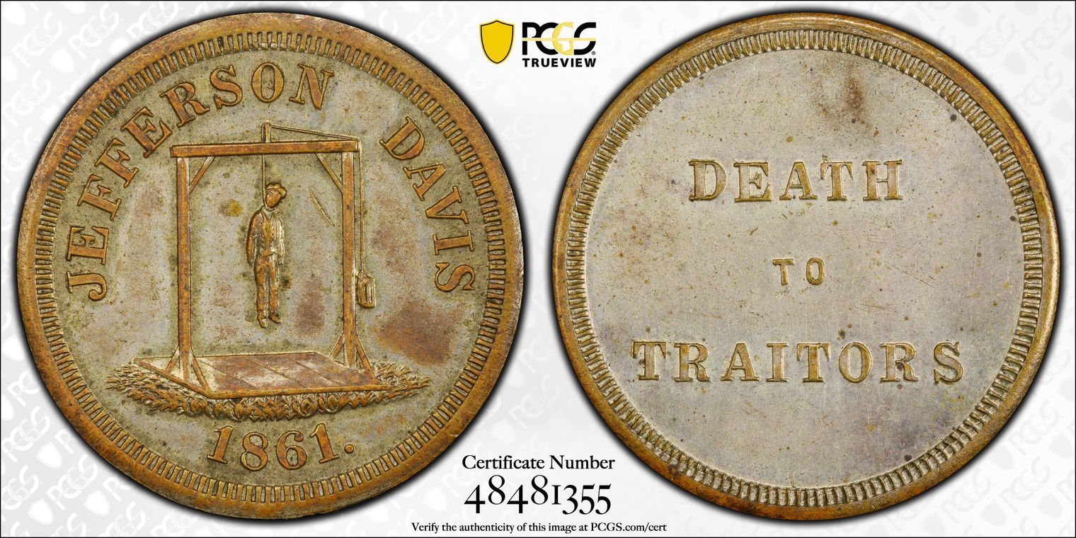 1861 Token DeWitt-C-1861-13 Silvered Brass Jefferson Davis AU58