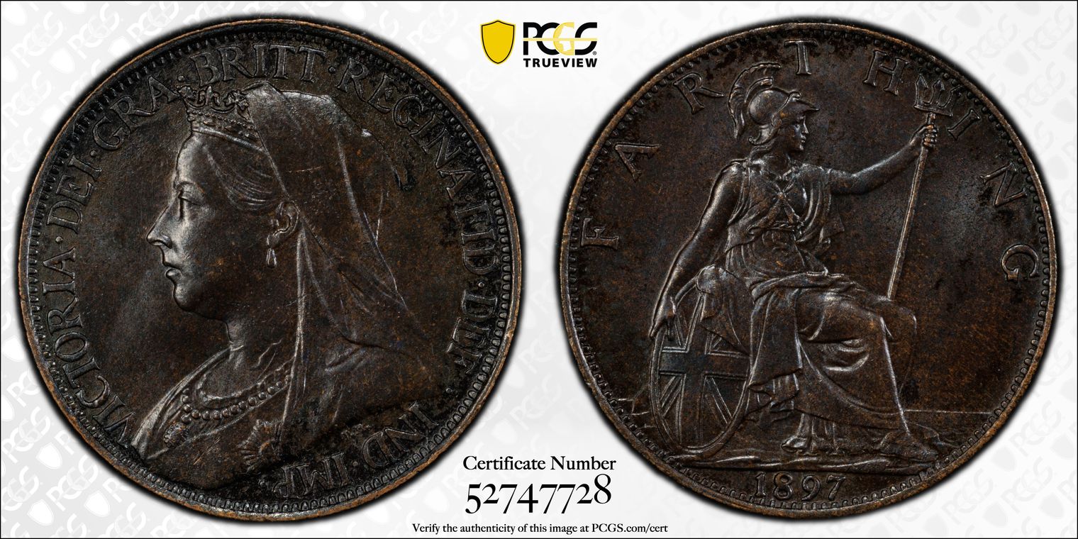 Peck 854 - unlike most of the "mint state" farthings of this first portrait, this one is fully struck and genuinely uncirculated.