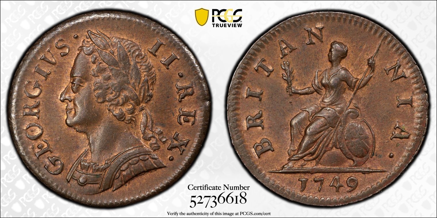 Freeman 507, 3 + B, but has no unique Freeman classification. Considered "Extremely Rare" and currently believed (by its owner, based on examples owned by Colin Cooke and other farthing specialists) to be the finest example known.