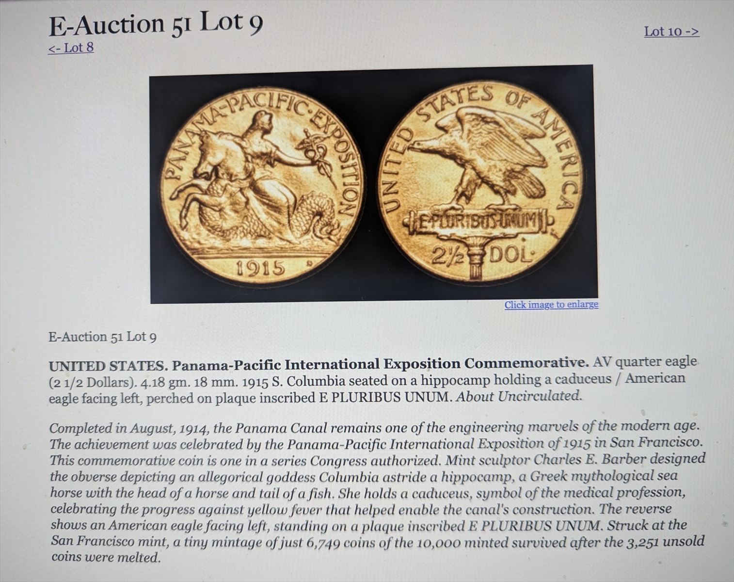 PANAMA-PACIFIC $2.50 COMMEMORATIVE ; bought as ANACS MS-61. Reholdered-Plus-Regular 5/17.