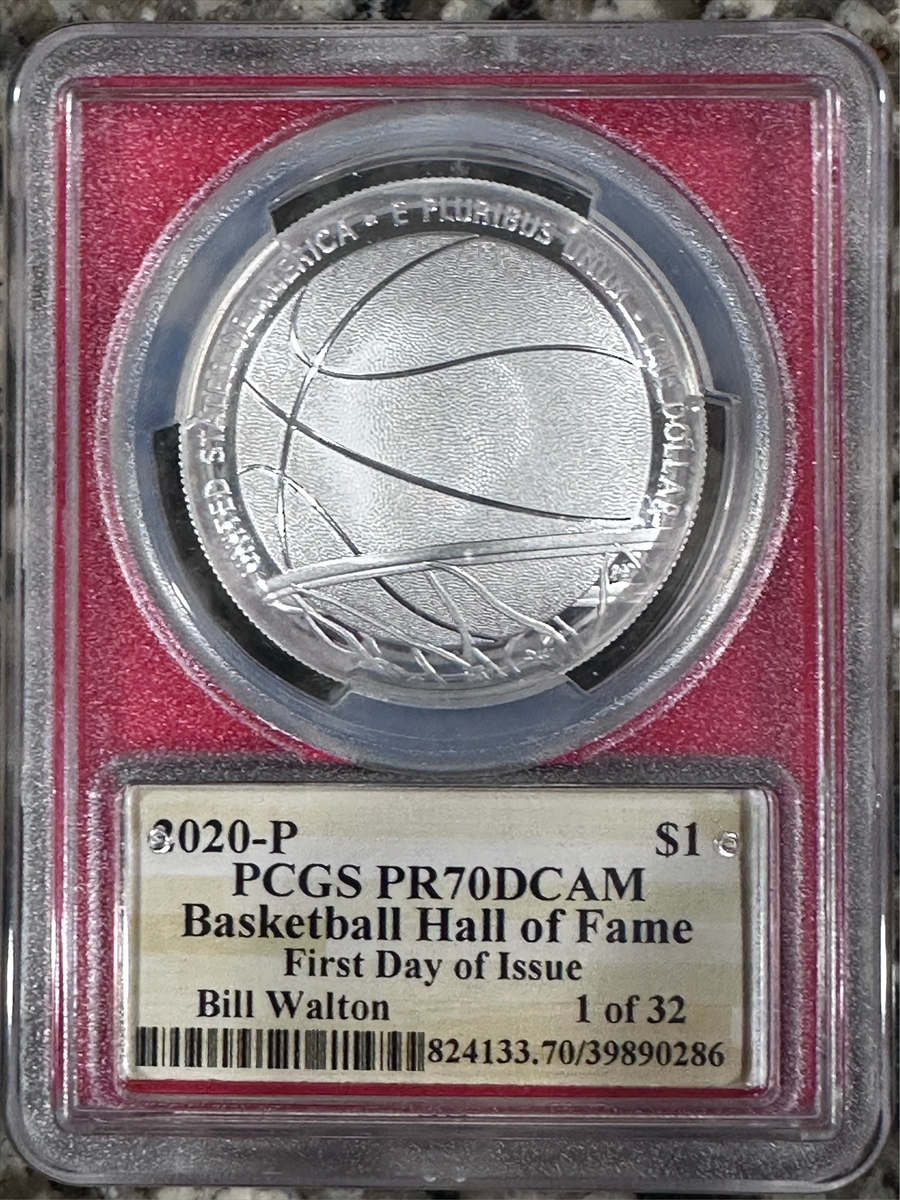 2020-P $1 Basketball Hall of Fame First Day of Issue Bill Walton Red Ink 1 of 32 PR70DCAM