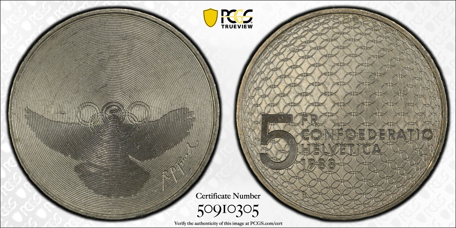 1988 $5 Seoul Olympics-Sailboard KM-143 w/o Denomination PR68DCAM