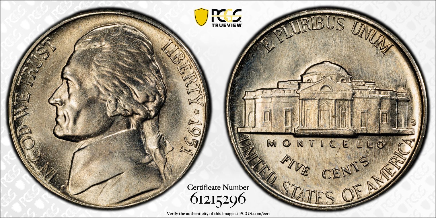 1951-S 5C MS65FS