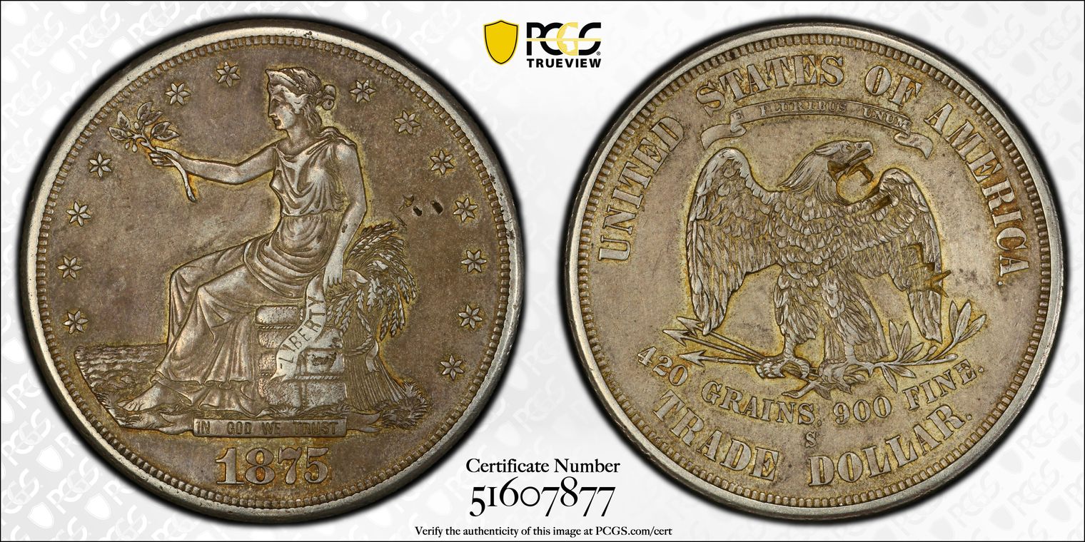 1875 Trade $1 Obv. 1 Rev. 1 AU