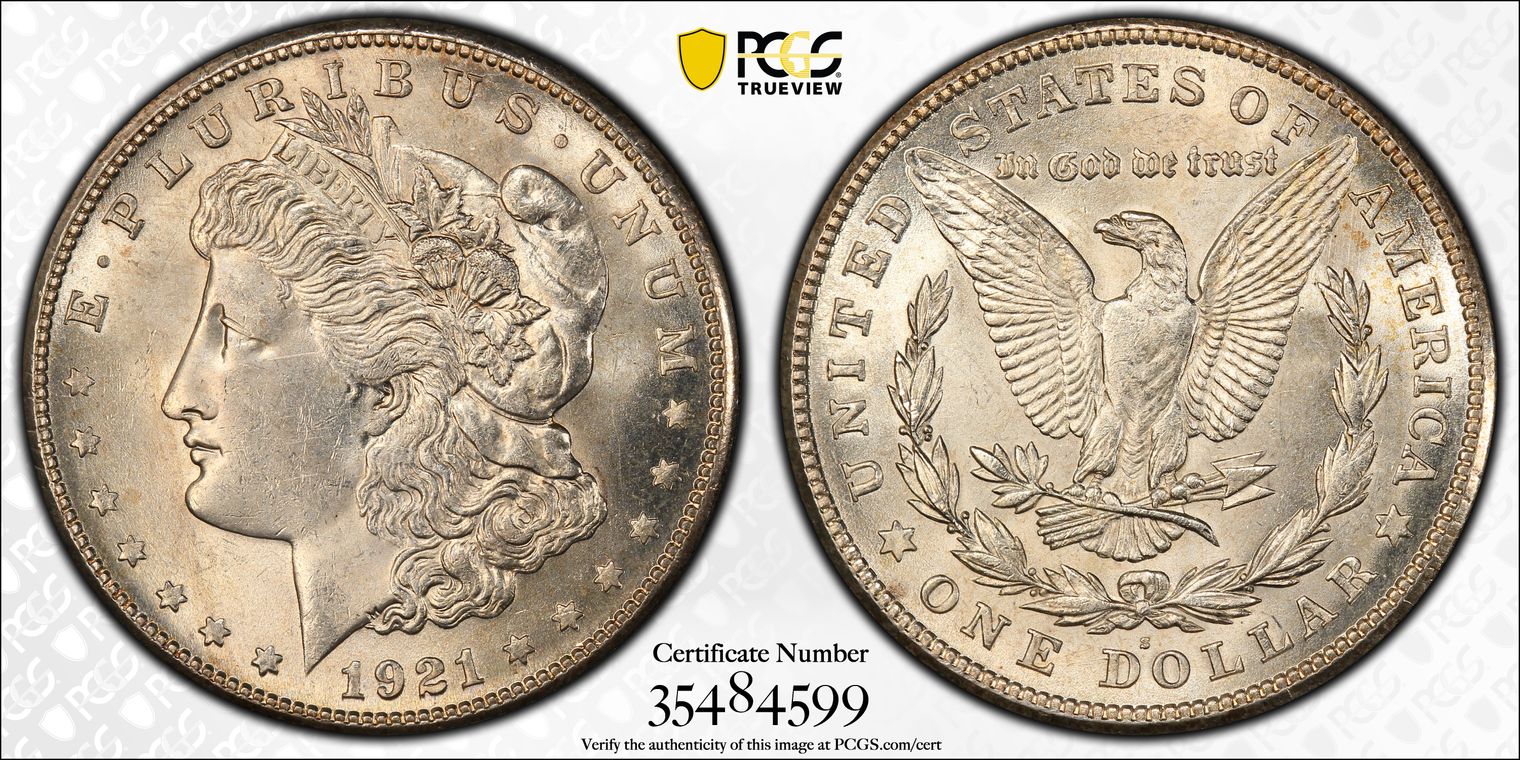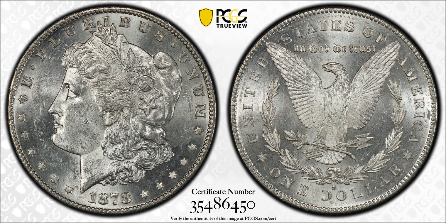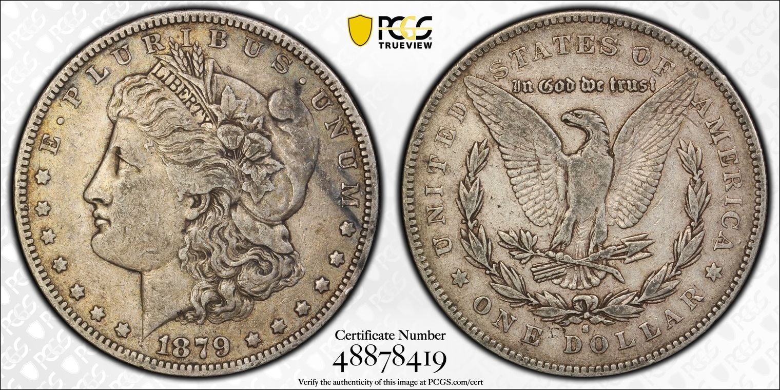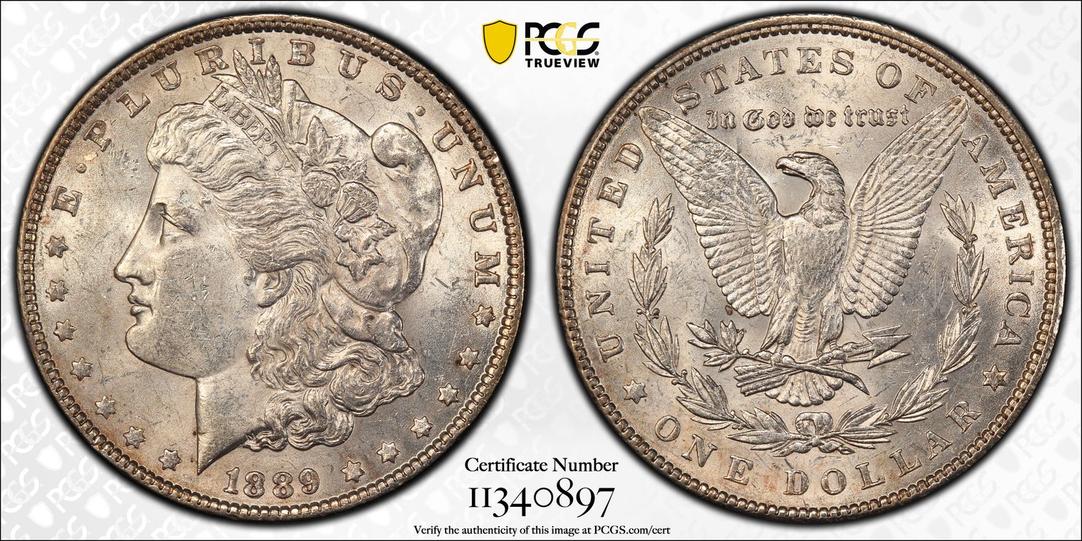 A * CAC..This is the Top Pop 14.17 and the ultra-stopper in the 8TF set. Not only is this coin AU58, it is also PL, but PCGS doesn't put PL designation on Circ Dollars, a Problem that needs to be resolved.