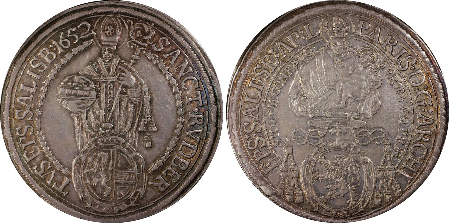 Legend Says: Beautifully toned on both sides, with a ring of aqua-teal at the rim, melding into an amber-orange-gold in the centers. The design elements are nicely defined by a crisp, exacting strike and there is only a touch of light wear on the surfaces. Inspection with a strong glass reveals some light, long toned over marks which have a minimal overall impact on the outstanding eye appeal.