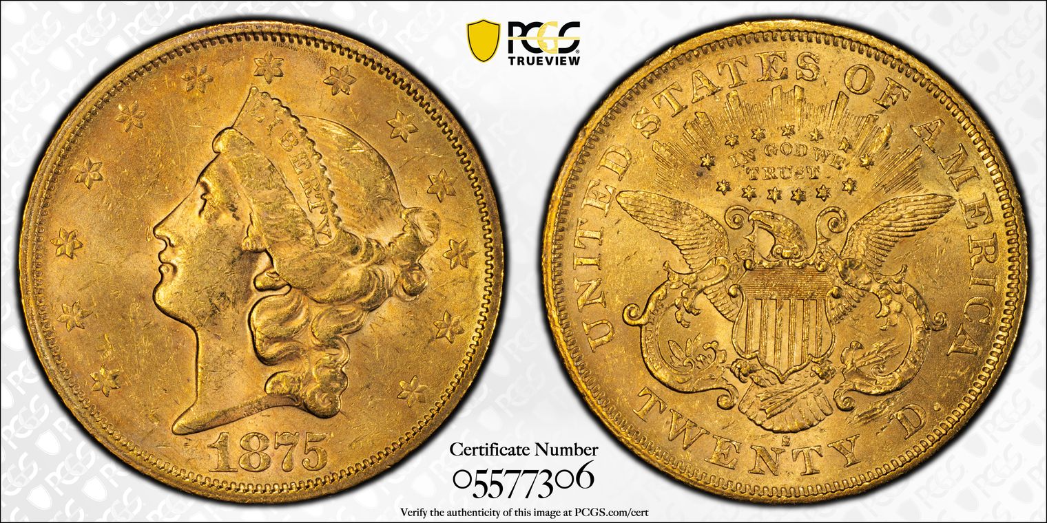 1875-S T$1 AU58+
