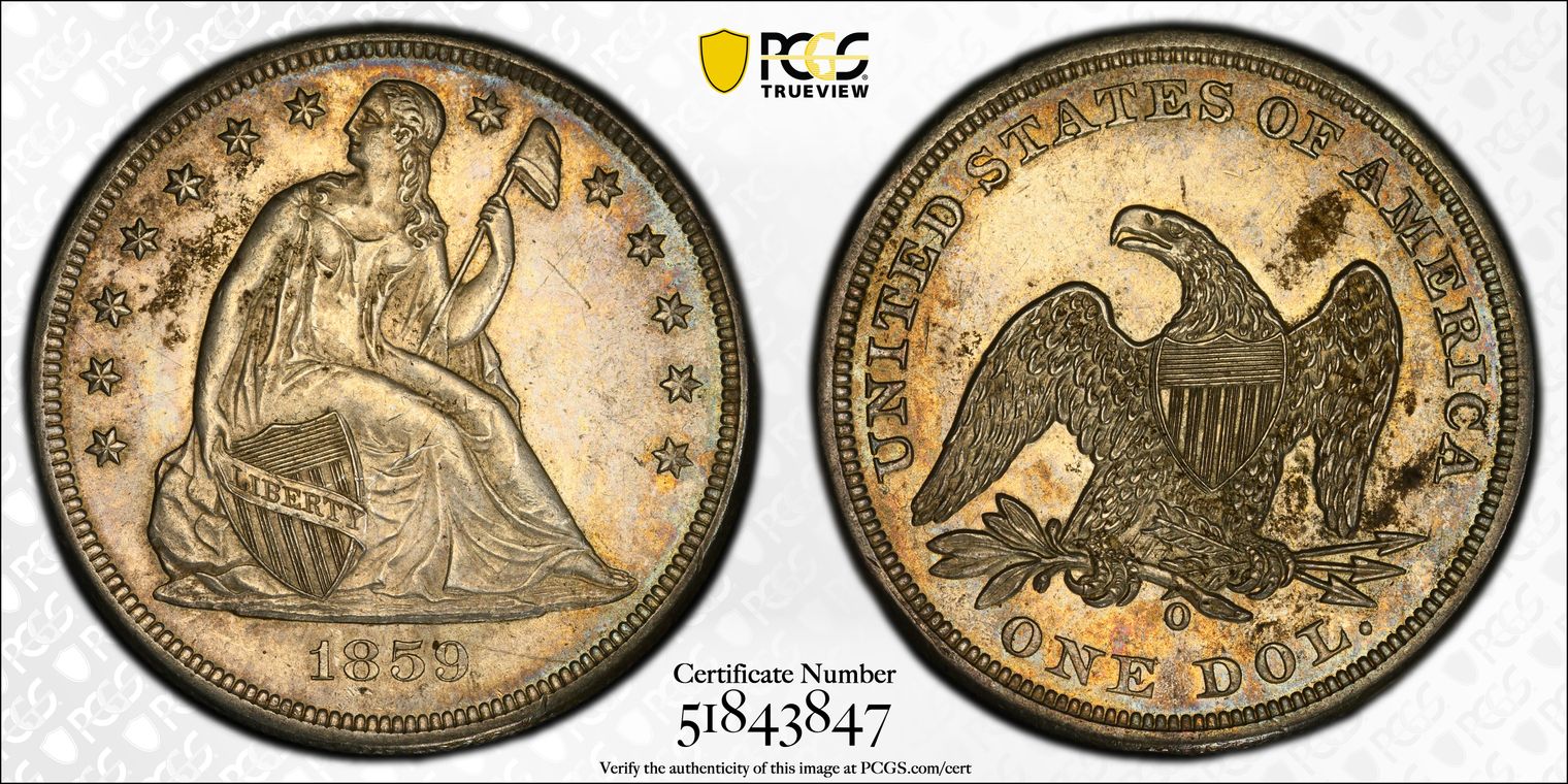 From The Greystones Collection of Seated Liberty Dollars. Sharply struck and lightly toned example with much of the mint luster remaining in the fields.