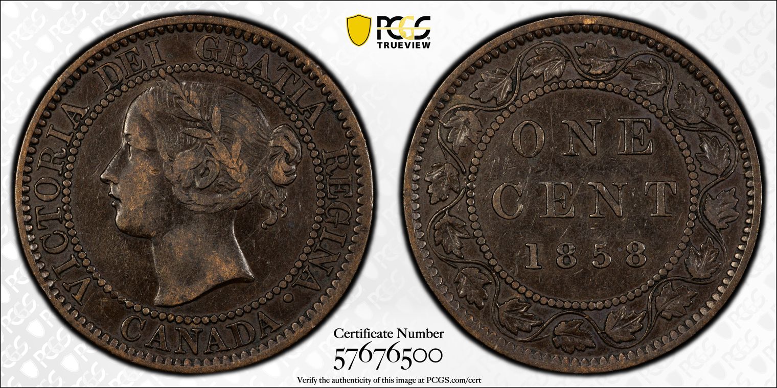 1858 1C ↑↑ Bronze, Broken Vine XF40BN
