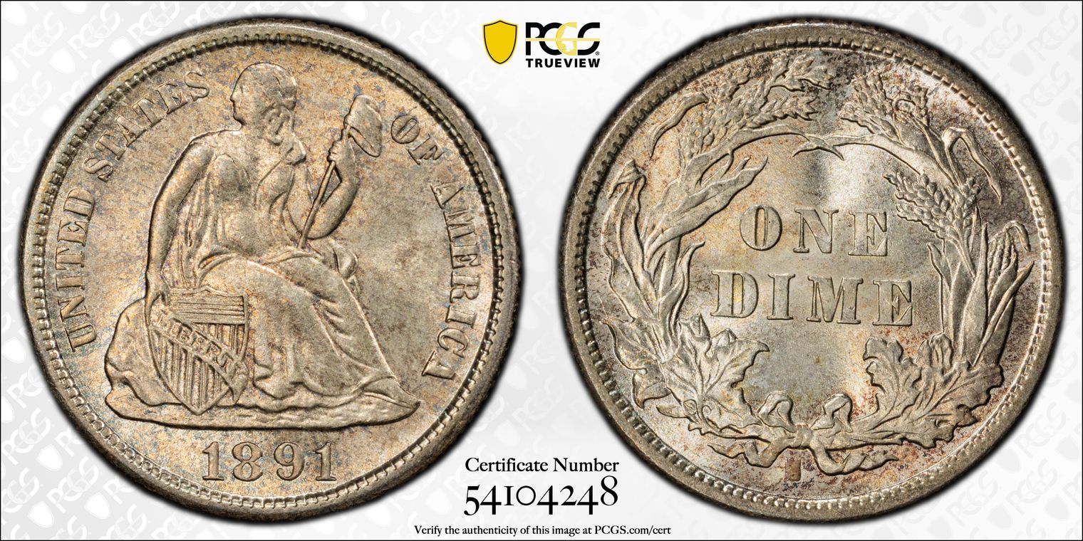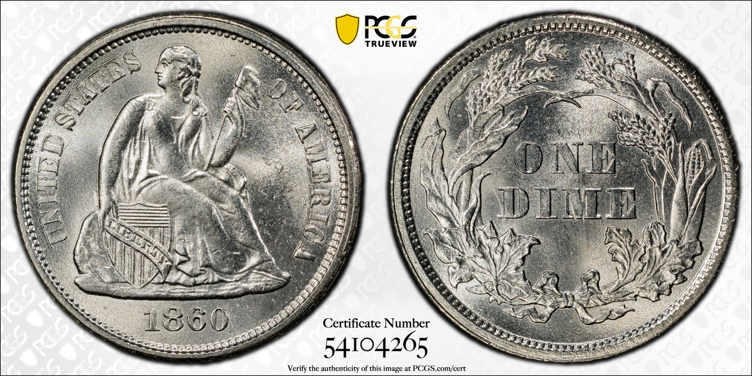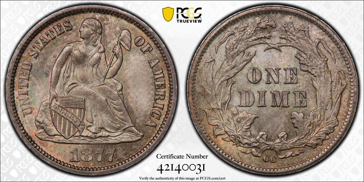 Ex. Gerry Fortin Collection. Long Flag 1, F105a. From FGRC description: "The 1869 Philadelphia issue was produced with two different date punch styles, the Short Flag 1 and Long Flag 1, with the latter seen on most Mint State examples. The strike is essentially complete with a partial wire rim."