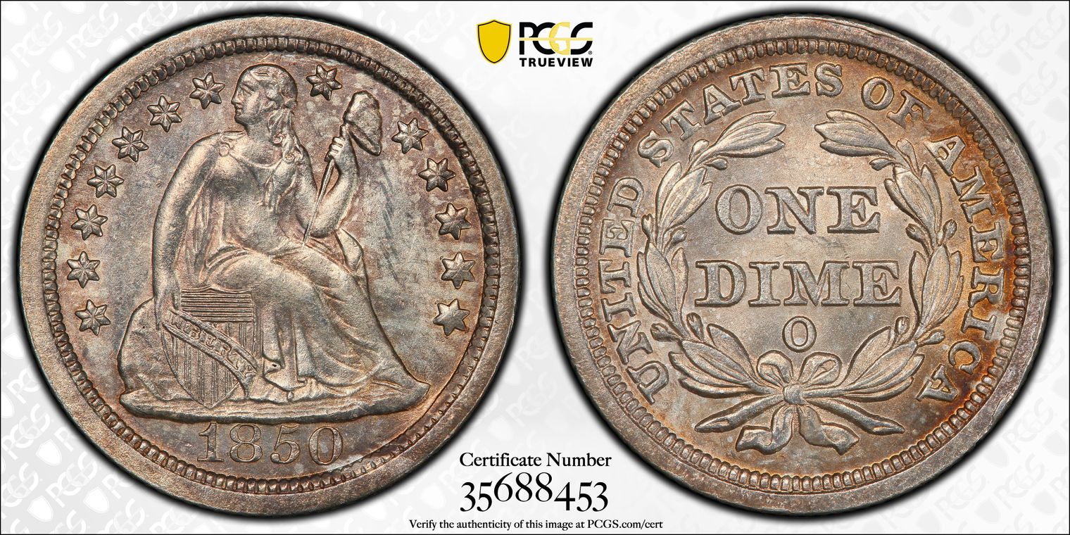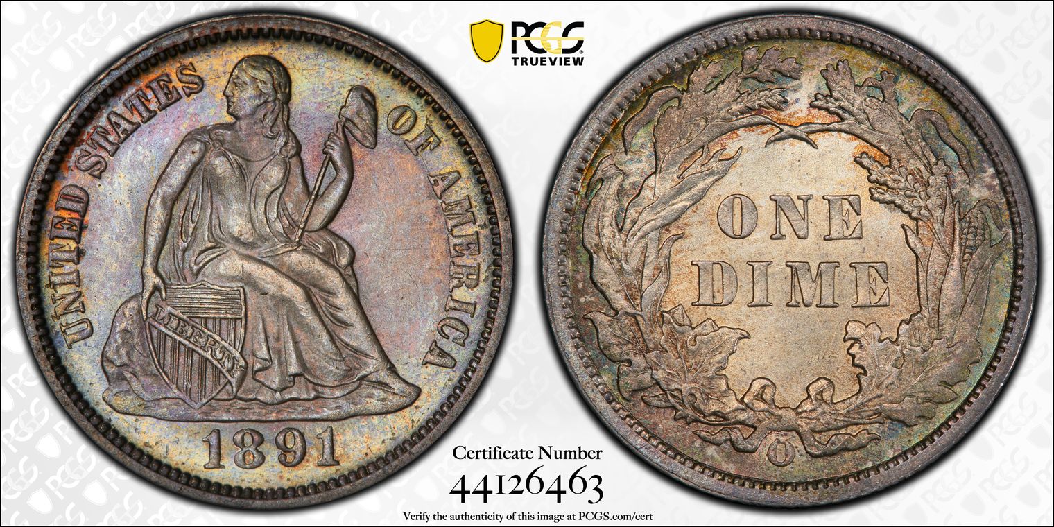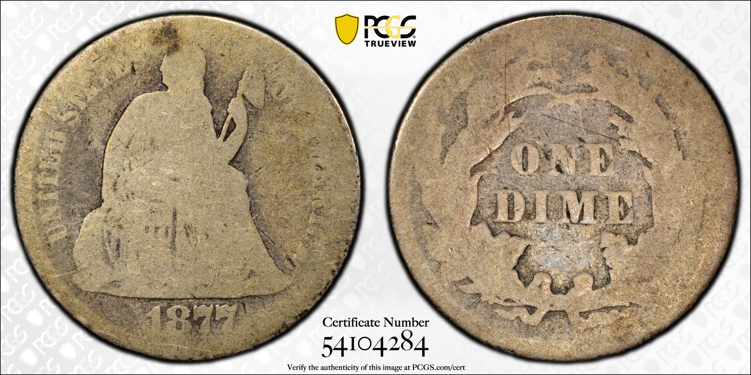 Ex. Gerry Fortin Collection. Long Flag 1, F105a. From FGRC description: "The 1869 Philadelphia issue was produced with two different date punch styles, the Short Flag 1 and Long Flag 1, with the latter seen on most Mint State examples. The strike is essentially complete with a partial wire rim."