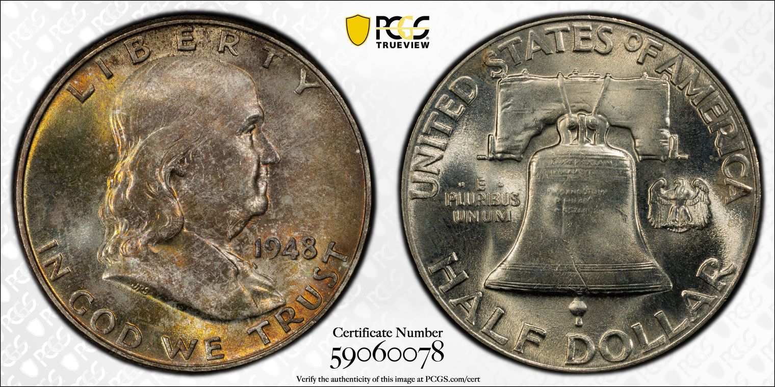 1st year of issue. Good toning started on this coin. I'm trying to collect the entire Franklin series in MS 66FBL or above.